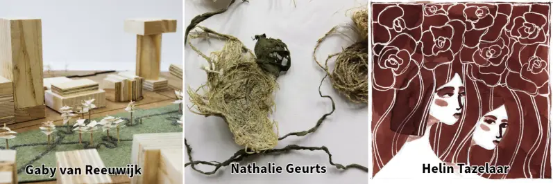 Voor meer informatie over de kunstenaars en hun werk, bezoek hun persoonlijke pagina’s: Gaby van Reeuwijk, Helin Tazelaar, en Nathalie Geurts.