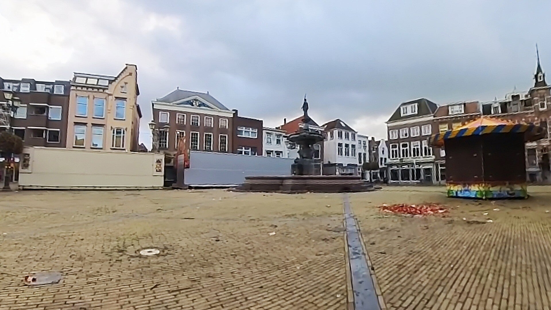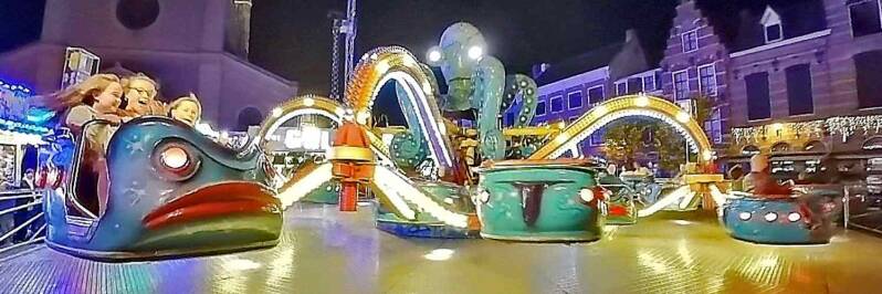 En dat is ook wel begrijpelijk. Als men de buiten werking zijnde Korte Brug al niet omhoog durft te laten staan door de harde wind, dan is het natuurlijk niet verstandig om hoge kermisattracties wel op te bouwen. Laten we hopen dat de wind snel gaat liggen en dat de regen wat milder wordt.