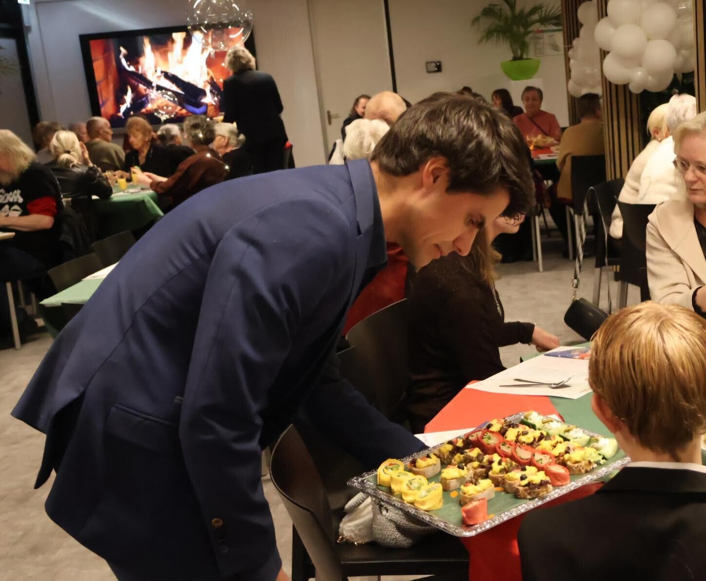 In totaal werden zo’n 130 gasten verwelkomd. Al bij binnenkomst werden zij in feestelijke kerstsfeer ontvangen door de kerstman en -vrouw, compleet met elfjes en een arrenslee. Hier konden de gasten op de foto, die zij direct mee naar huis kregen. Daarna volgde een welkomstdrankje en werden de aanwezigen naar hun tafels begeleid.