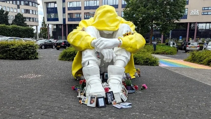 Met een hoogte van 2,5 meter, een lengte van 4 meter en in de opvallende kleuren geel en wit, is er vanaf vandaag, 1 juli tot en met 15 juli, een indrukwekkend groot kunstwerk te bewonderen op het Stadhuisplein in Gorinchem. Dit kunstwerk maakt deel uit van het project 'Stille Strijd'.