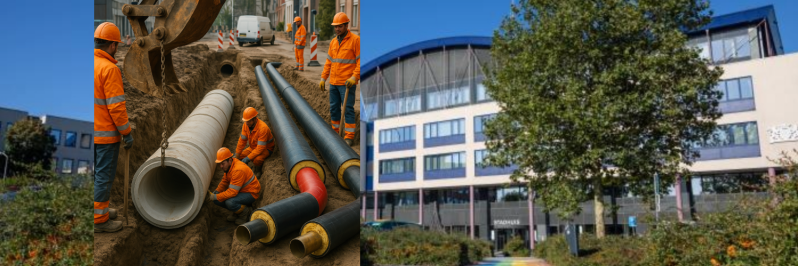 Het stadhuis wordt aangesloten op het warmtenet. Aannemer Nijkamp legt hiervoor een leiding aan vanaf de Bullekeslaan via de Schelluinsestraat en Banneweg. Dit heeft gevolgen voor het verkeer: