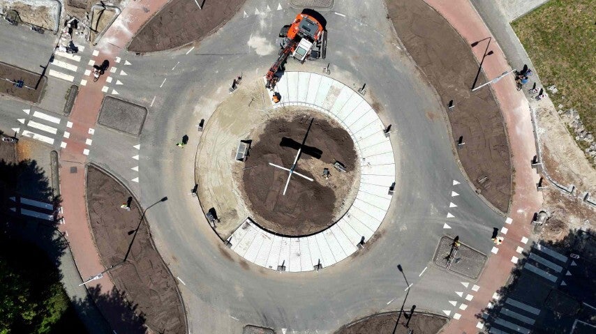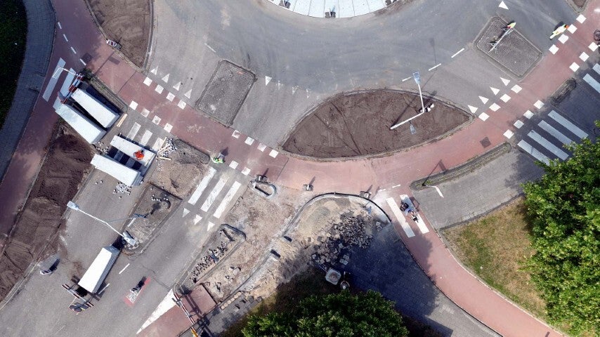 Maandag is gestart met de herinrichting van de drukke rotonde bij Eike’s Hof. Tot 25 juli is de rotonde volledig afgesloten voor auto- en vrachtverkeer, wat zorgt voor opvallende rust op de normaal drukke plek.