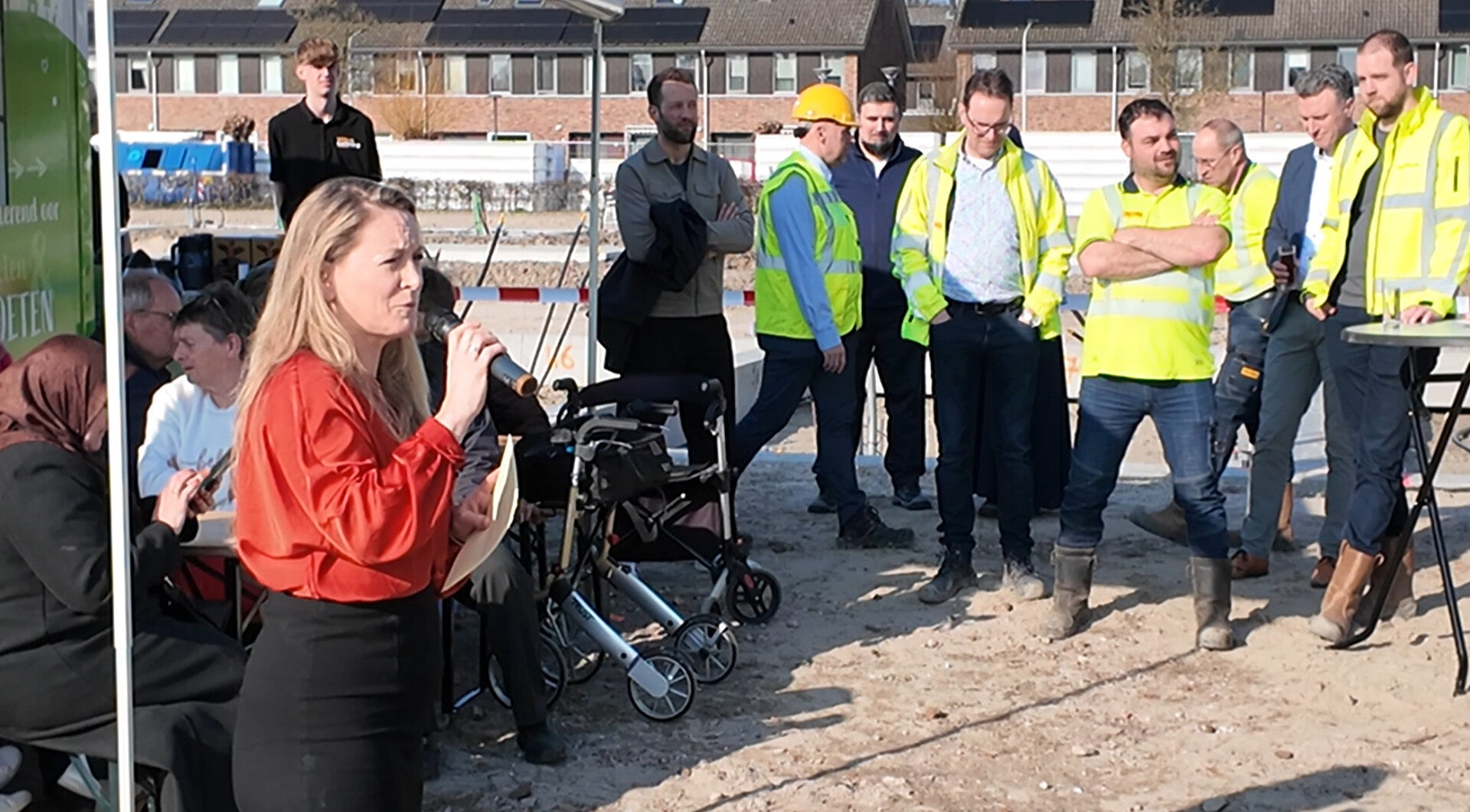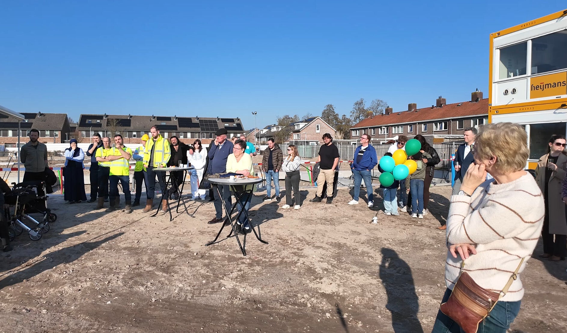 Na de symbolische handeling werd geproost op een voorspoedige bouw samen met bewoners, omwonenden en de bouwers.