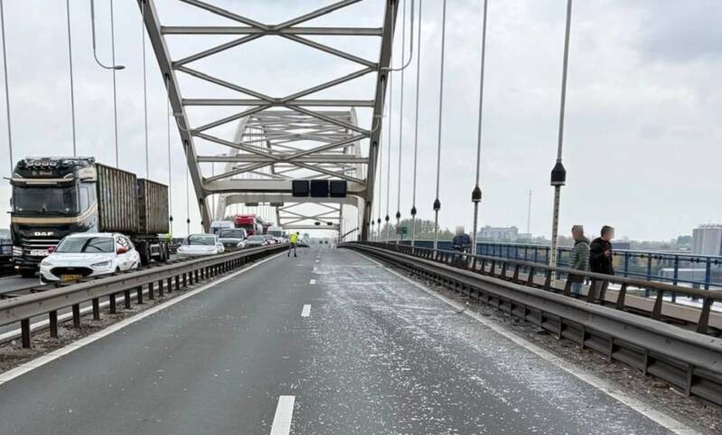 Op de A27 bij de Merwedebrug richting het noorden is woensdagmiddag, 23 april, glas op het wegdek terechtgekomen. Een voertuig verloor daar glasplaten, waardoor de rechterrijstrook bezaaid raakte met scherven.