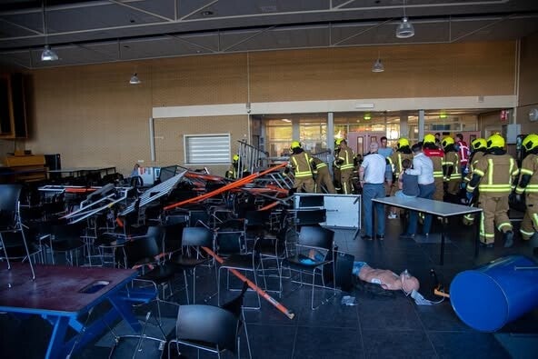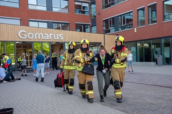 Een ogenschijnlijk normale schooldag op de Gomarus Scholengemeenschap veranderde deze week plots in een crisissituatie. Niet echt, maar levensecht. In een grootschalige rampenoefening stortte een stellage in de aula in, met meerdere ‘gewonden’ als gevolg.