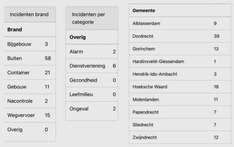 De cijfers zijn de situaties waarbij daadwerkelijk een brandweerauto ter plaatse is geweest (opgeschoonde cijfers). Deze aantallen kunnen lager zijn dan het totaal aantal meldingen. Dit kan worden verklaard uit meerdere meldingen van dezelfde brand, of meldingen waar later geen brandweer nodig bleek. Bekijk de landelijke cijfers op de website van het NIPV. De aantallen kunnen door een andere verwerking afwijken van de cijfers die wij hier melden.